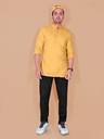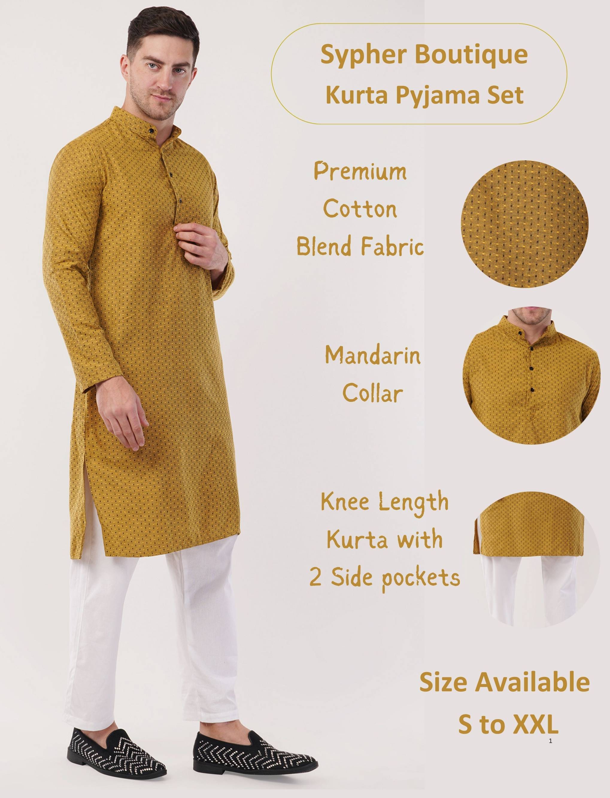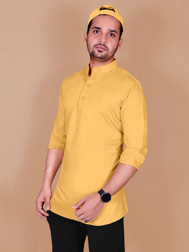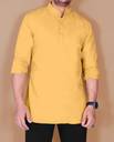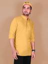 Men Solid Cotton Blend Straight Kurta (Yellow)