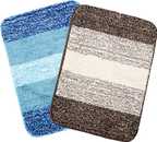 Saral Home Microfiber Bathroom Mat (Light Blue, Pack of 2, Large)
