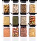SARAZA Plastic Grocery Container - 1100 ml (Pack of 12, Black)