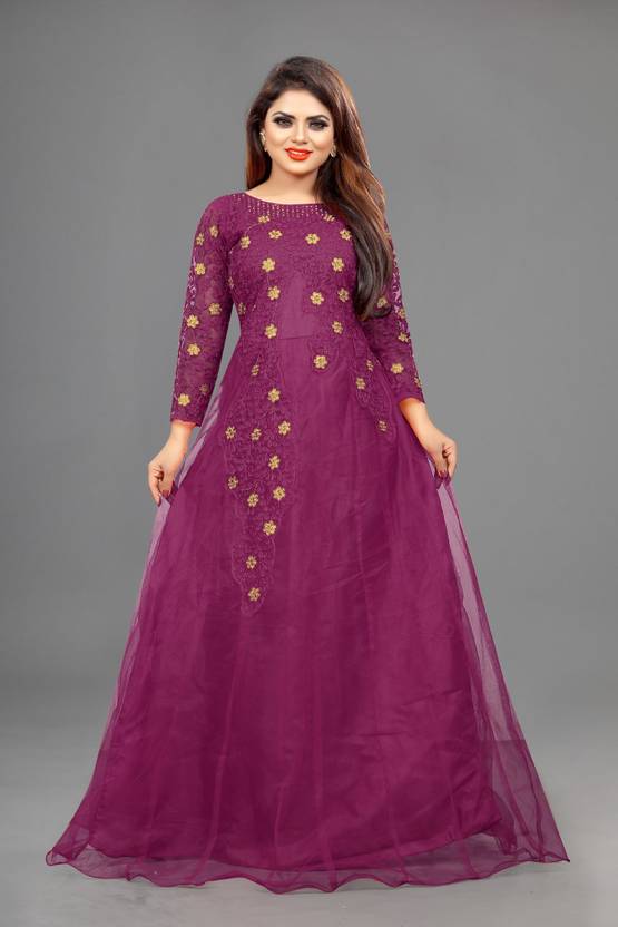 This Gown is Made From Net Fabric Having Embroidery Work on it. Gown is Comes With Inner Attached. Gown Color Wine, Gown Length is 57 Inch. It has 3/4 Sleeves with Embroidery Work. Gown is Semi-Stitched which can be fitted up to 44 inch Bust Size. Dry Clean Or Normal Hand Wash. Product Color May Slightly Variation Due To Photographic Lighting Or Your Screen Settings And Other Accessories Are Only Modelling Purpose.