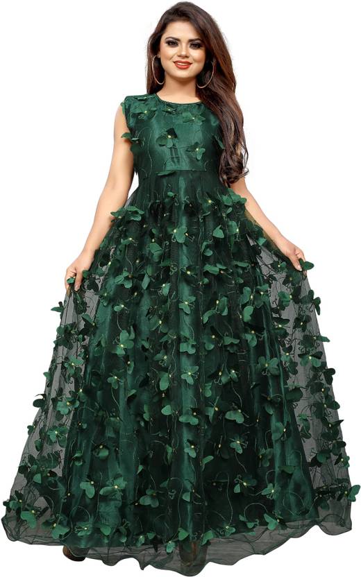 This Gown is Crafted with Butterfly over Net Fabric Having Embroidered Work on it. Gown is Comes With Inner Attached. Gown Color Grey, Gown Length is 56 Inch. It has Sleeveless Gown. Gown is Semi-Stitched which can be fitted up to 42 inch Bust Size. Gown is Emblished with Fancy . Dry Clean Or Normal Hand Wash.