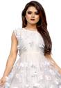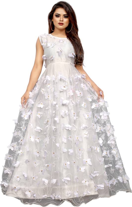 This Gown is Crafted with Butterfly over Net Fabric Having Embroidery Work on it. Gown is Comes With Inner Attached. Gown Color White, Gown Length is 56 Inch. It has Sleeveless Gown. Gown is Semi-Stitched which can be fitted up to 42 inch Bust Size. Gown is Emblished with Fancy Butterfly. Dry Clean Or Normal Hand Wash. Product Color May Slightly Variation Due To Photographic Lighting Or Your Screen Settings And Other Accessories Are Only Modelling Purpose.
