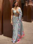 Sareemall Digital Print Daily Wear Satin Saree (Grey)