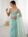 Sareemall Ethnic Sarees comes With Blouse Piece, Which can be Stitched according to Your Taste and Preference. This Saree is Crafted by Skill Craftsmen without Compromising on its Quality. With This Beautiful Design and Fabric, This Saree will fetch You Oodles of Compliments and Praise. saree fit size is 5.5 mtr saree & 0.8 mtr blouse, Free Size | SAREE FABRIC : Party & Festive Sarees|BLOUSE FABRIC: Net Blouse|SAREE COLOR: Light Blue Sarees|BLOUSE COLOR: Turquoise Blouse|PATTERN: Embellished Sarees|WORK DETAILS: Beaded Sarees|BLOUSE PRINT OR PATTERN: Solid Blouse|BORDER: Embellished Sarees|OCCASION: Party/Wedding/Evening/Event Sarees|TRENDS: Designer Saree Sarees|USAGE: Ethnic Sarees|SEASON: Summer Sarees|TYPE: Party Wear Sarees