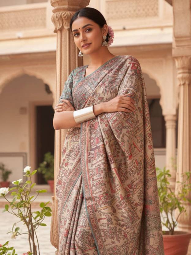Sareemall Ethnic Sarees comes With Blouse Piece, Which can be Stitched according to Your Taste and Preference. This Saree is Crafted by Skill Craftsmen without Compromising on its Quality. With This Beautiful Design and Fabric, This Saree will fetch You Oodles of Compliments and Praise. saree fit size is 5.5 mtr saree & 0.8 mtr blouse, Free Size | SAREE FABRIC : Silk Blend Sarees|BLOUSE FABRIC: Silk Blouse|SAREE COLOR: Beige Sarees|BLOUSE COLOR: Blue Blouse|PATTERN: Printed Sarees|WORK DETAILS: NA Sarees|BLOUSE PRINT OR PATTERN: Madhubani Blouse|BORDER: Printed Sarees|OCCASION: Party/Wedding/Evening/Event Sarees|TRENDS: Designer Saree Sarees|USAGE: Ethnic Sarees|SEASON: Summer Sarees|TYPE: Baluchari Sarees