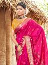 This saree from the house of SAREE MALL is made from Pure Silk and is Pink in color. SAREE MALL Ethnic Sarees comes With Blouse Piece, Which can be Stitched according to Your Taste and Preference. This Saree is Crafted by Skill Craftsmen without Compromising on its Quality. With This Beautiful Design and Fabric, This Saree will fetch You Oodles of Compliments and Praise. saree fit size is 5.5 mtr saree & 0.8 mtr blouse, Free Size |.