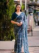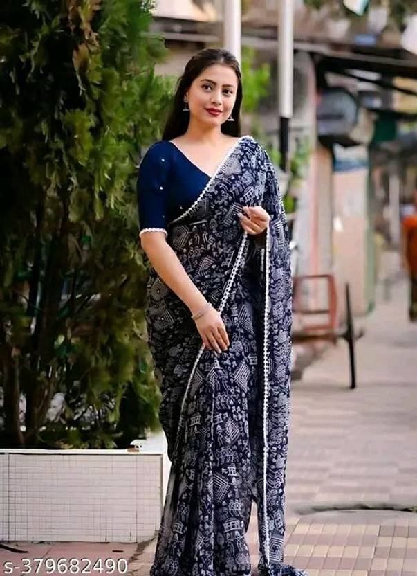 SAREEYA16 Printed Daily Wear Georgette Saree (Blue)