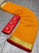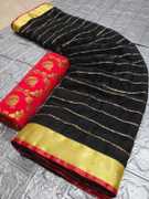 Its a striped pattern gerogette saree with weaving jari and heavy unstitched banarasi brocade blouse, sarees, sari party, sarees wedding, traditional Sarees, silk sarees, cotton Silk Sarees, party Wear sarees, banarasi Sarees, banarasi silk Sarees, kanjivaram silk sarees, art silk sarees, sarees Online Low Price Shop By Popular Ethnic Wear Sarees Collections: designer Sarees