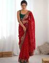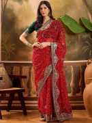 Banarasi, Bandhani, Cotton, Embroidered, Embroidered Chiffon, Heavy Designer Look, Red Silk, Zari border, Wedding Look, Traditional collection, Thread Embroidery, Silk collection