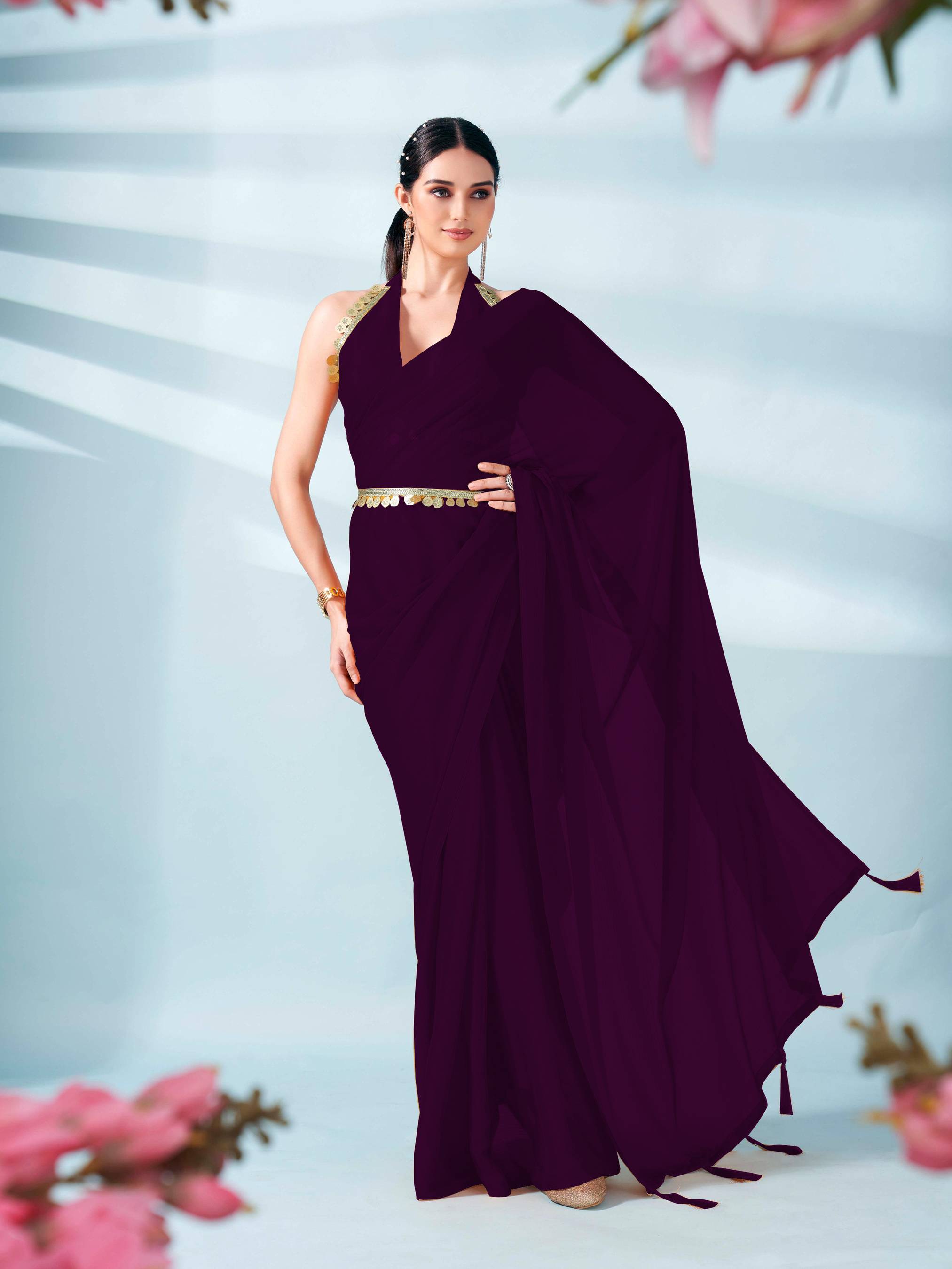 SareezaaStore Solid/Plain Bollywood Satin Saree (Purple)