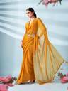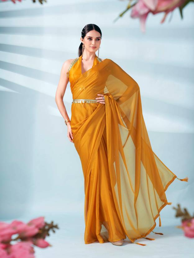 SareezaaStore Solid/Plain Bollywood Satin Saree (Mustard)