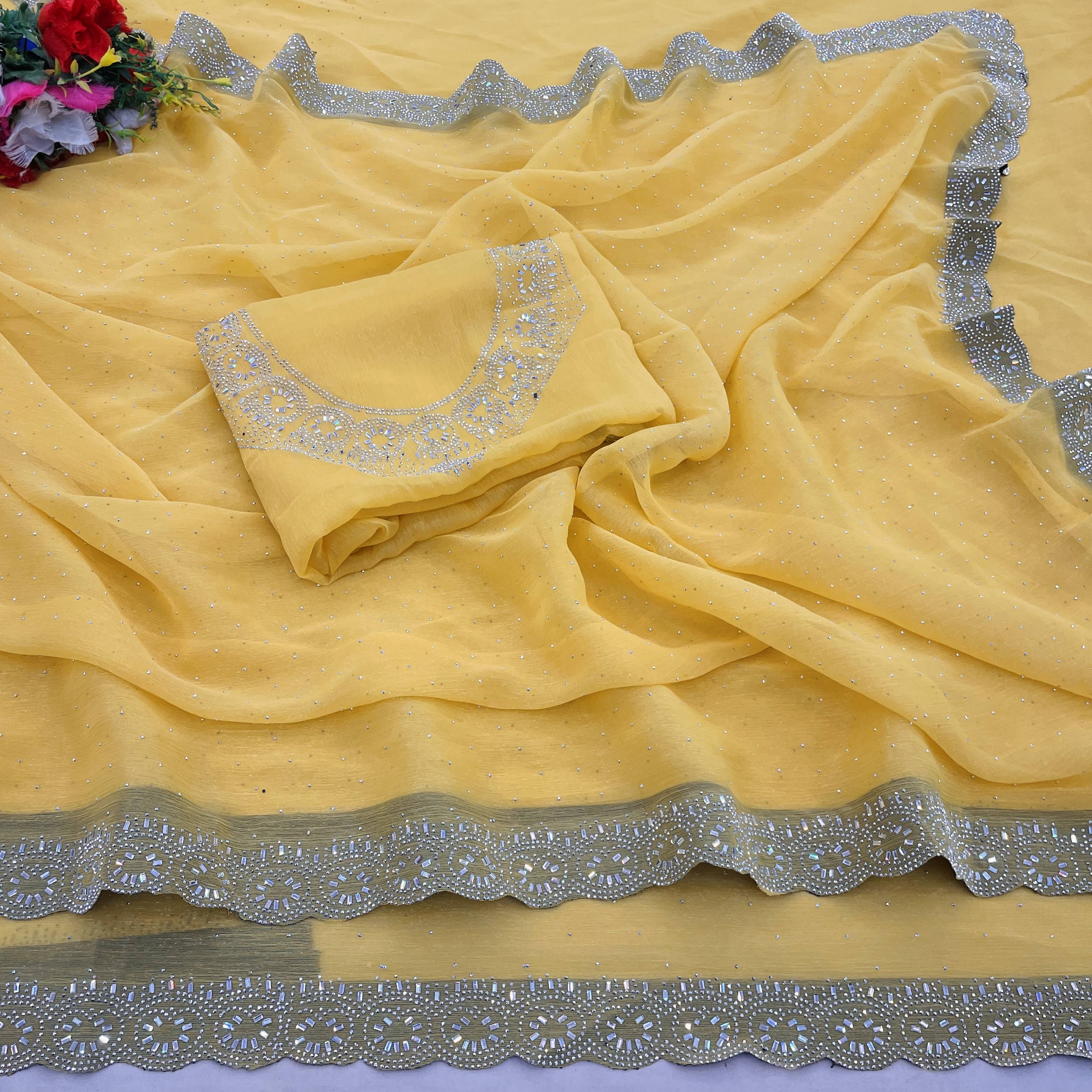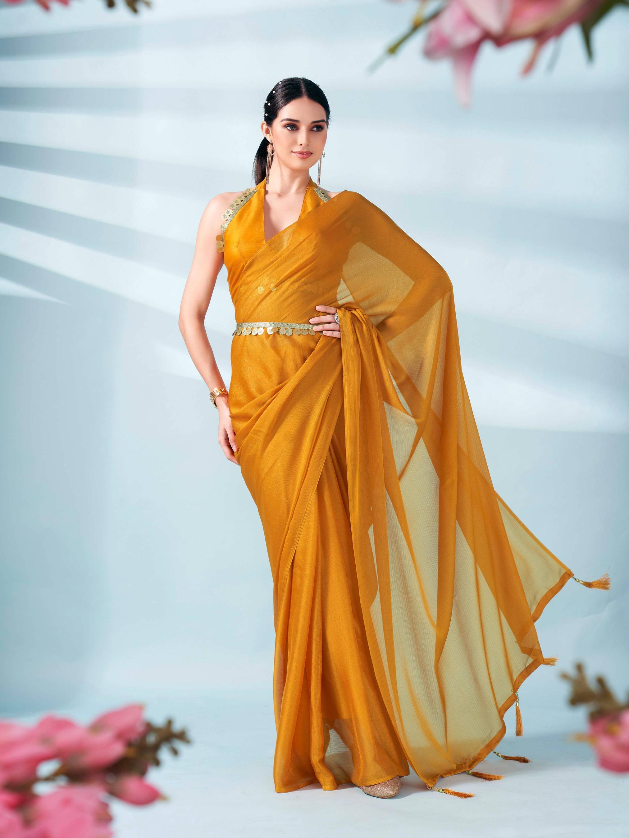 Solid/Plain Bollywood Satin Saree (Mustard)