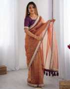 sareya veela Embellished Maheshwari Georgette Saree (Orange)