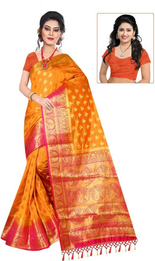 Solid/Plain Bollywood Jacquard Saree (Yellow)