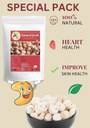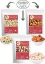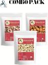A fresh dry fruits combo consisting of almonds, cashews (kaju), and makhana (fox nuts) offers a diverse range of flavors, textures, and health benefits, making it an excellent choice for both indulgence and nutrition: Almonds: Nutrient-Dense: Almonds are a powerhouse of nutrients, containing healthy fats, protein, fiber, vitamins (especially Vitamin E), and minerals (such as magnesium and calcium). Heart Health: Rich in monounsaturated fats, almonds may help lower bad cholesterol levels, promoting heart health. Antioxidants: High in antioxidants, almonds contribute to fighting oxidative stress and supporting overall well-being. Cashews (Kaju): Nutritional Profile: Cashews are packed with healthy fats, protein, vitamins (B vitamins), and minerals (such as magnesium, copper, and zinc). Heart Health Benefits: Monounsaturated fats in cashews can help support heart health by reducing bad cholesterol levels.