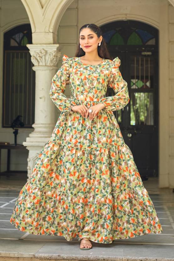 Self Design Crepe Stitched Anarkali Gown (Multicolor)