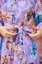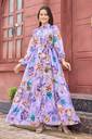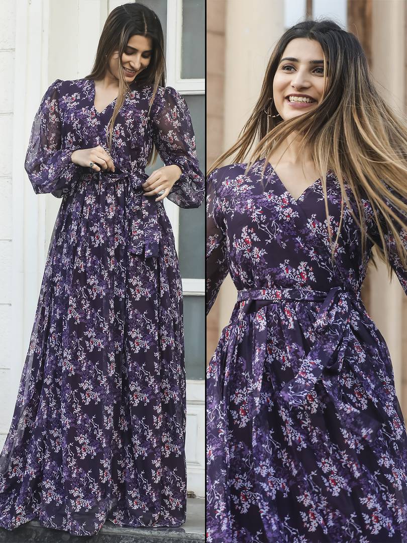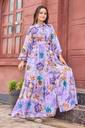 Printed Satin Stitched Flared/A-line Gown (Purple)