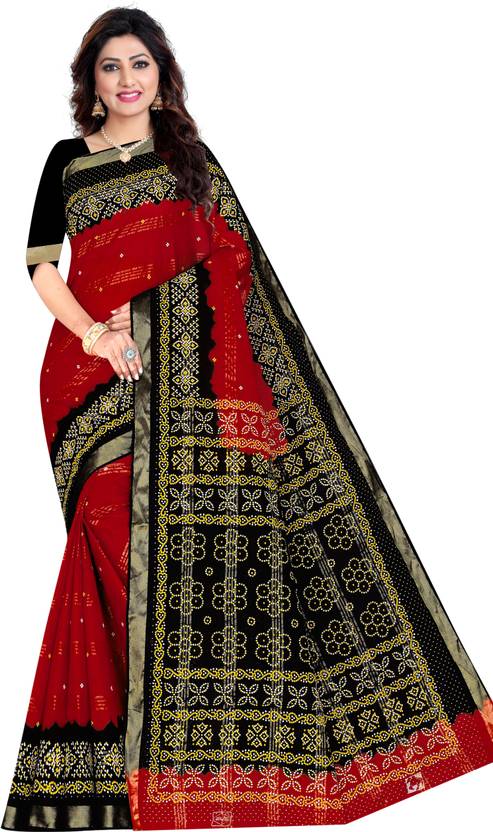 SARITA SAREES Dyed Bandhani Pure Cotton Saree (Red)