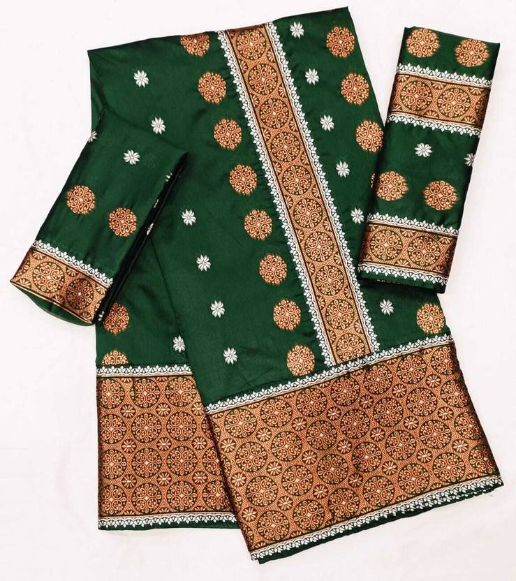 agarwal silk Printed Dokhona Art Silk Saree (Pack of 3, Dark Green)