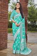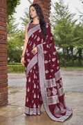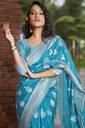 Experience the exquisite craftsmanship and floral splendor of our banarasi woven jacquard saree with floral motif pattern, White Thread, and Blouse Fabric. Create stunning looks, embrace versatile styling, and enjoy best offers on your purchase. Discover the regal sheen and elegance of this extraordinary saree. Shop now and elevate your style!
