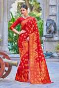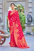 Experience the exquisite craftsmanship and timeless appeal of our Banarasi Woven Jacquard Saree with Motif Pattern. Make a fashion statement, embrace personalized style, and enjoy best offers on your purchase. Discover the regal sheen and elegance of this extraordinary saree. Shop now and redefine your elegance!