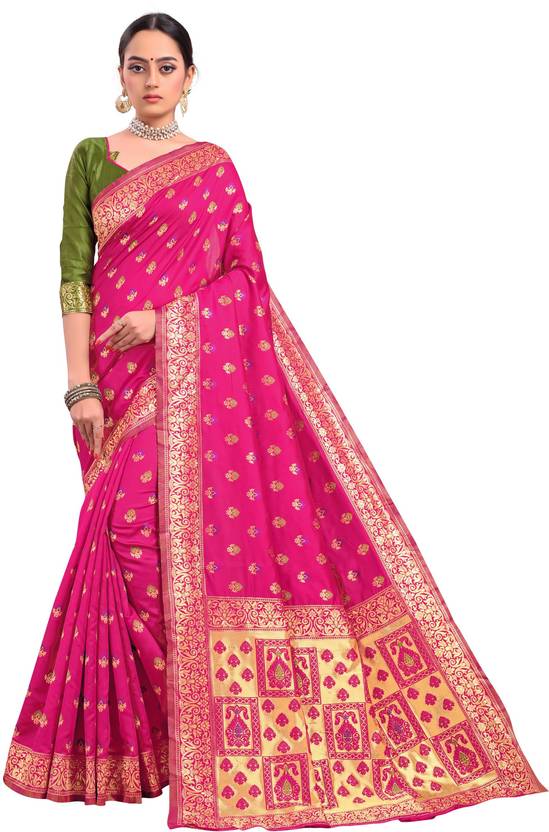 Sariya Woven Banarasi Silk Blend, Jacquard Saree (Pink)