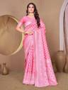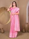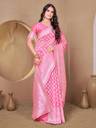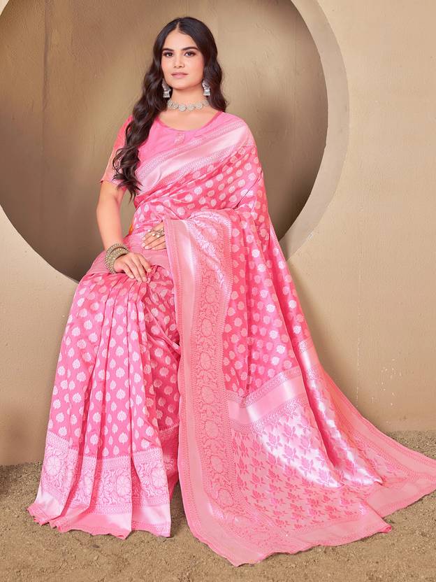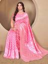 Baby pink color banarasi silk woven design saree and has a woven jacquard design border and blouse Piece