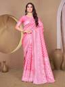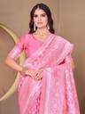 Baby pink color banarasi silk woven design saree and has a woven jacquard design border and blouse Piece