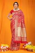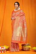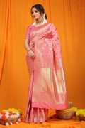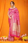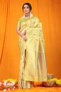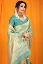 sarjan creation Self Design, Woven, Floral Print, Solid/Plain Kanjivaram Jacquard, Pure Silk Saree (Light Green)