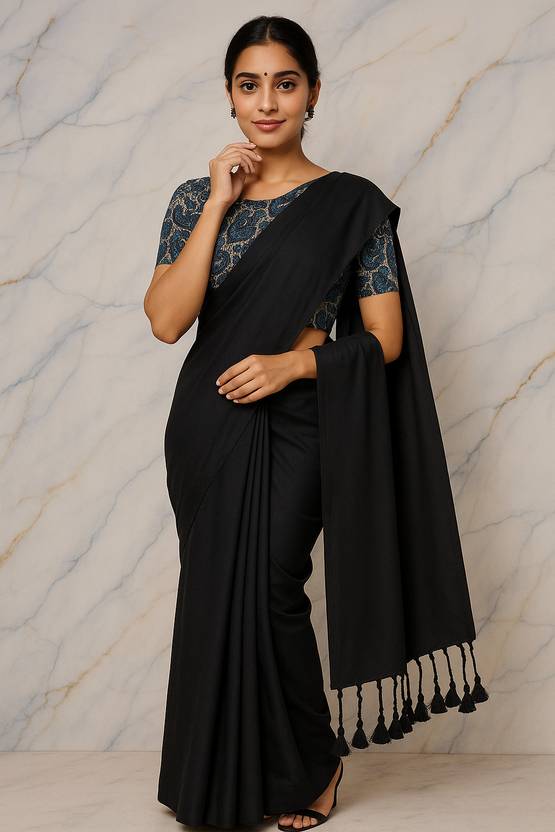 SOLID PLAIN DUAL BORDER SAREE