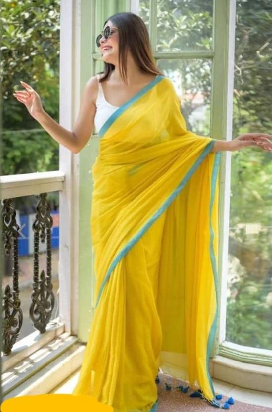 SOLID PLAIN DUAL BORDER SAREE