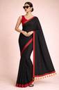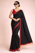 SARKARETHNIC Solid/Plain Handloom Handloom Pure Cotton Saree (Black)