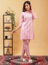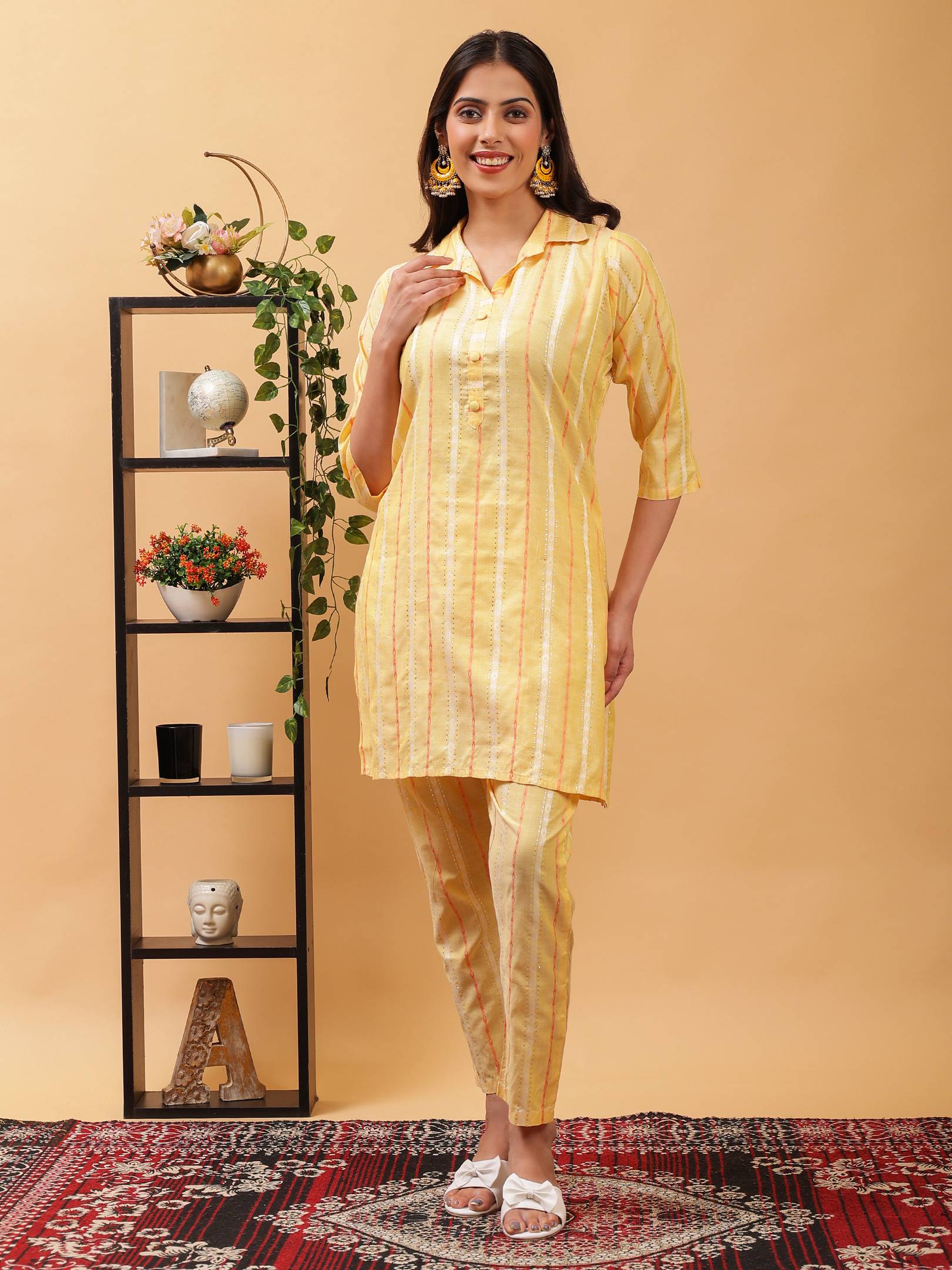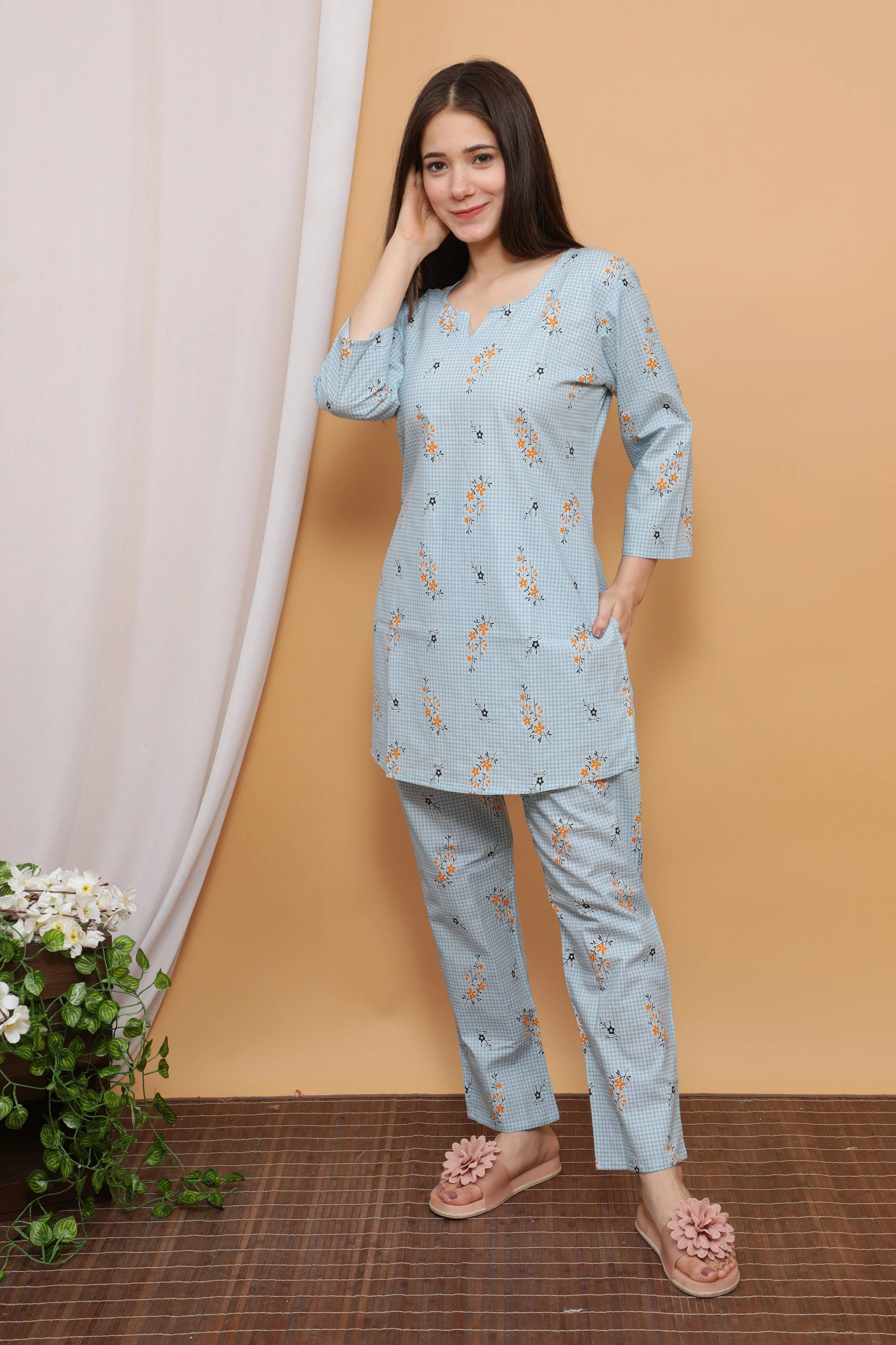 This stylish co-ord set for women features a beautiful booti pattern, offering a perfect blend of comfort and fashion. Crafted from soft, breathable fabric, it's designed for all-day wear. The coordinated top and bottom make it a versatile choice for casual outings, lounging, or semi-formal occasions, while the intricate booti detailing adds a touch of elegance. Easy to maintain and lightweight, it's a must-have for any modern wardrobe.
