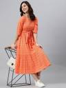 BDREE Women Printed Flared Kurta (Orange)