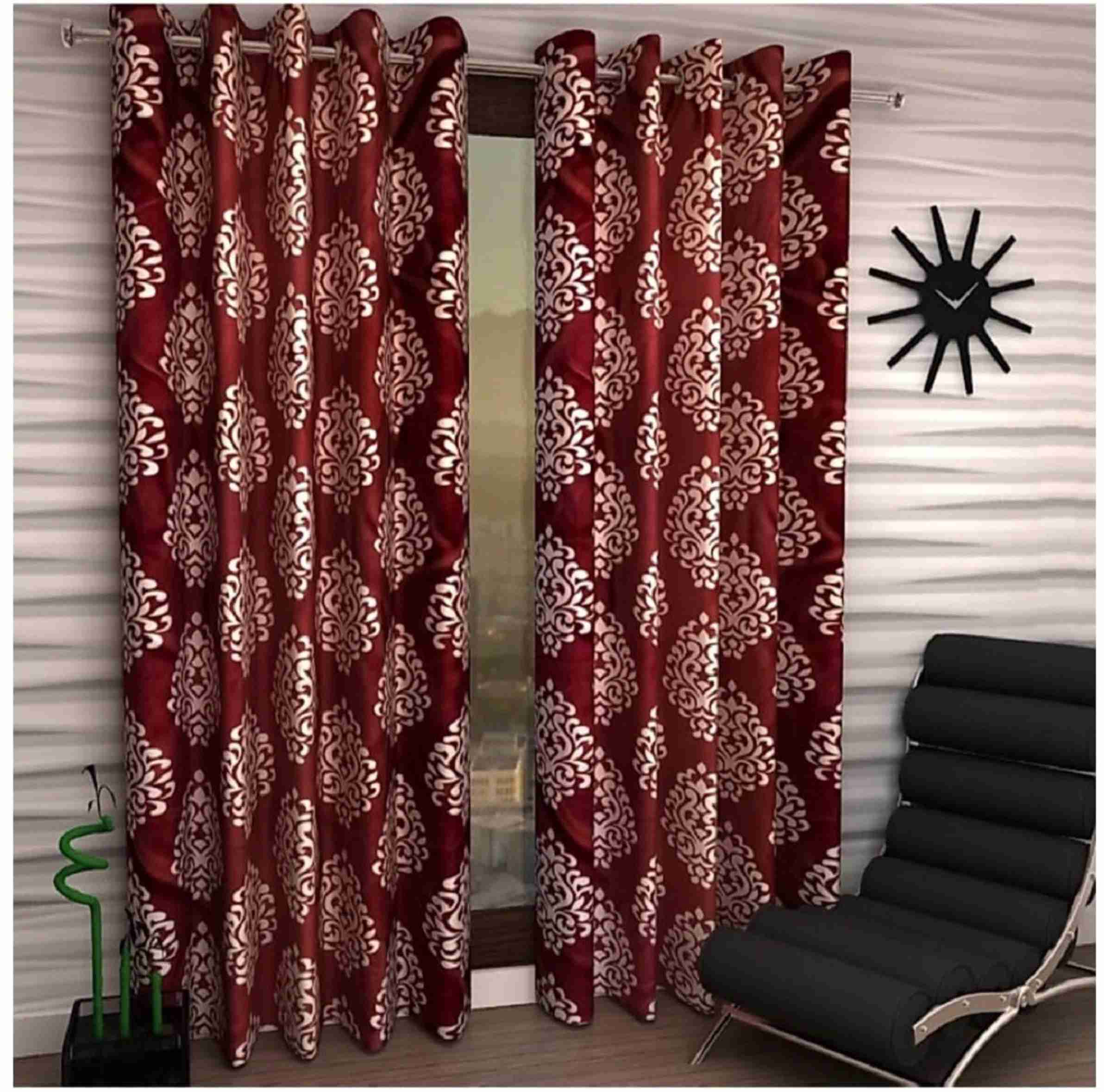 150 cm (5 ft) Door Polyester Semi Transparent Curtain (Pack Of 2) (CUR-SUP-0012-RED-7FT-S2, Printed)