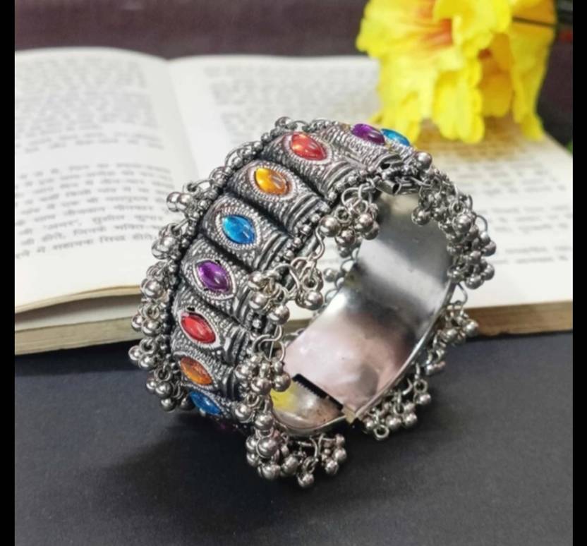 Oxidised Silver Plated Cuff Bracelet Bangle for Women and Girls