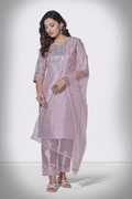 Featuring intricate embroidery, this women's kurta, pants, and dupatta set showcases fine detailing that enhances its appeal. The delicate thread work and sequin work add depth and character, creating a refined look suitable for various occasions. Placed thoughtfully, the embroidery ensures balance, making the ensemble eye-catching without being overwhelming. Whether worn during the day or in the evening, the embroidery adds a graceful touch.