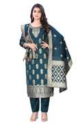 Introducing our exquisite Stylish Jacquard Silk Suit Dress Material for Women – a perfect blend of elegance, craftsmanship, and modern fashion sensibilities. This stunning dress material set offers you the opportunity to create a personalized and breathtaking ensemble that reflects your unique style.Crafted from high-quality Jacquard silk, this dress material is a testament to luxury and comfort. The Jacquard weaving technique lends a rich texture and intricate patterns to the fabric, adding depth and dimension to your outfit.The design of this dress material is a true work of art. Intricately woven patterns and motifs adorn the fabric, creating a harmonious blend of tradition and contemporary aesthetics. The versatility of Jacquard fabric allows for the creation of both subtle and elaborate designs, making it suitable for various occasions.