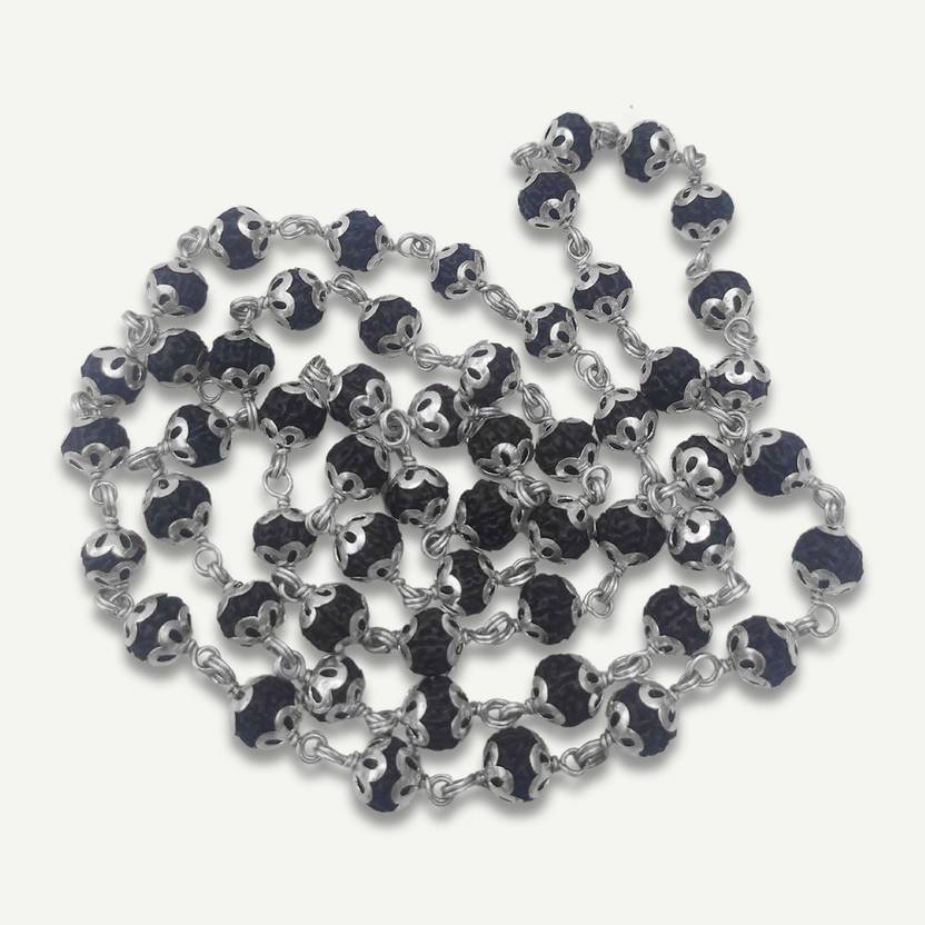 5-MUKHI BLACK RUDRAKSHA SILVER CAP MALA(54+1)