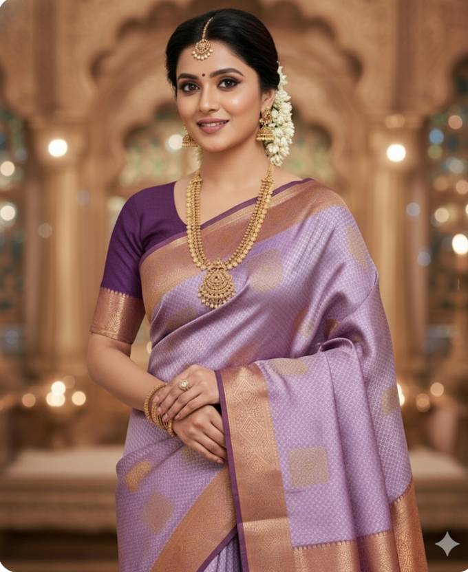 Embellished, Self Design Assam Silk Raw Silk Saree (Purple)