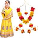 Radha Dress Lehenga Dupatta & Flower Accessories Maangtikka Mala Kundal Bracelet