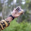 Dumroo is a small percussion instrument that has been used traditionally by the Hindus and Buddhists for a long time. In the Indian Mythology, it is with the sound of the Dumroo that lord Shiva created the whole universe. The Dumroo also commonly spelt as Damroo or Dumaroo and is played by gently holding the narrow central region with the fingers and vigorously twisting the wrist. This vigorous movement creates a fast paced percussive sound. These Dumroos are traditionally crafted by artisans in India and since they are all handmade, they sometimes vary in size, colour and frequency. They are easy to learn and can be played by all age groups.