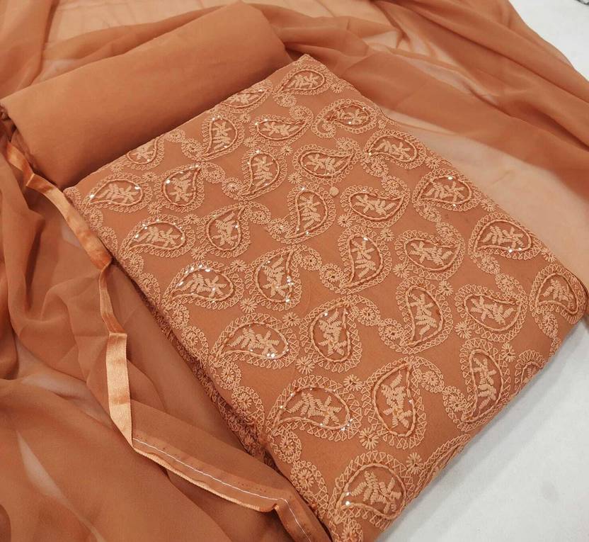 Flaunt a fashionable look by wearing this beautiful salwar suit dress material which comes from SARVOPARI . The use of superior quality Slub Cotton fabric ensures that you stay comfortable for long hours. Besides, it features an embroidered pattern that renders it beautiful, while the amazing combination of shades further makes it appealing.