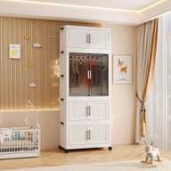Sasimo 1-Wardrobe 4-Door 4-Shelf Plastic Collapsible Cupboard PC Collapsible Wardrobe (Finish Color - 4-White, DIY(Do-It-Yourself))