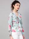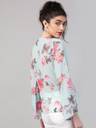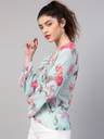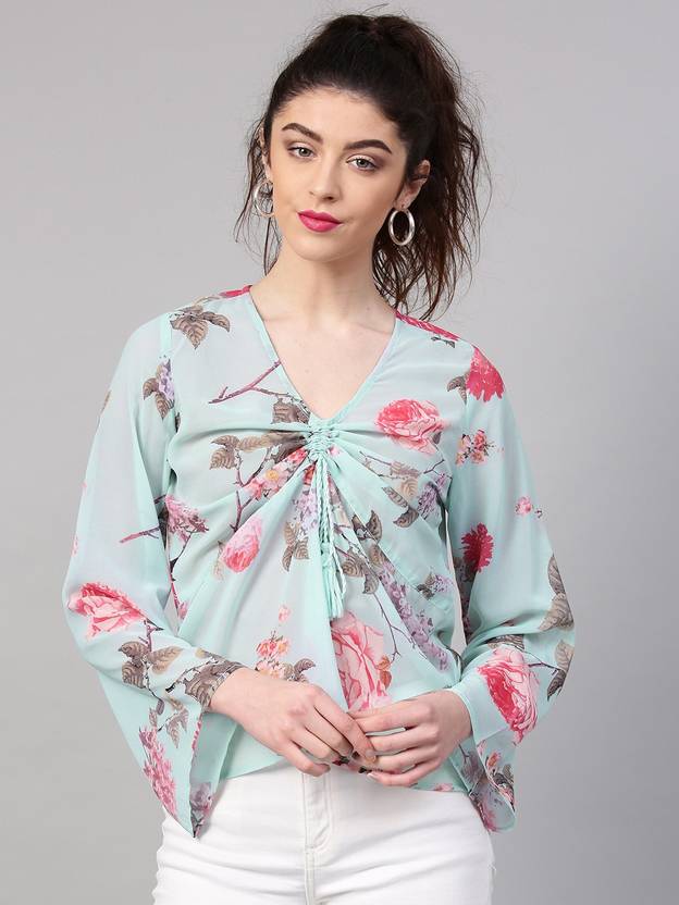 Aqua Floral Ruched Front Top , in Georgette fabric, Unlined, Regular , Comfort Fit, No Closure, Straight Hemline and features Ruched At Front