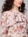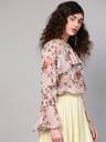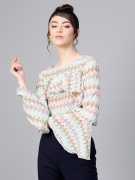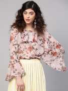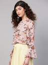 SASSAFRAS Casual Bell Sleeve Printed Women Brown Top