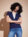 Navy Rib Contrast Polo Neck Top, in Rib fabric, Unlined, Regular Length, Slim Fit, No Closure, Straight Hemline and features Contrast Collar Detail