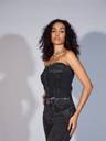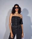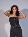 Black Denim Tube Crop Top, in Denim fabric, Unlined, Crop Length , Slim Fit, Button Closure, Straight Hemline and features Show Flap Detail