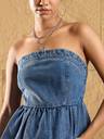 Ice Blue Off Shoulder Peplum Top, in Denim fabric, Unlined, Crop Length , Slim Fit, Zipper Closure, Flared Hemline and features Fringe At Hem