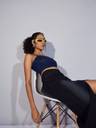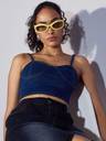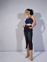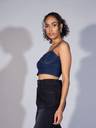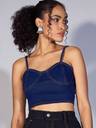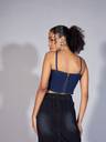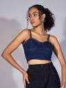 Blue Denim Strappy Crop Tops, in Denim fabric, Unlined, Crop Length , Slim Fit, Zipper Closure, Straight Hemline and features Metal Zipper At Back